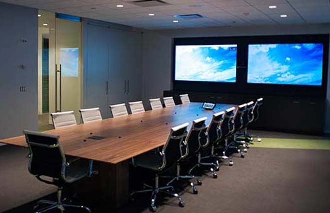 We seamlessly integrate the various systems of an automated conference room, from projectors to lighting to audio/video and overall control of the entire integrated system. An automation system makes it possible for your sales or board meeting to work together: lighting, phone system, video sources, display devices and audio systems.